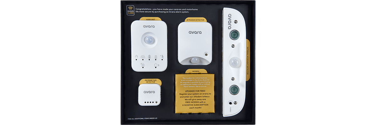 Avara Basic er en komplett alarmpakke for bobil og campingvogn.